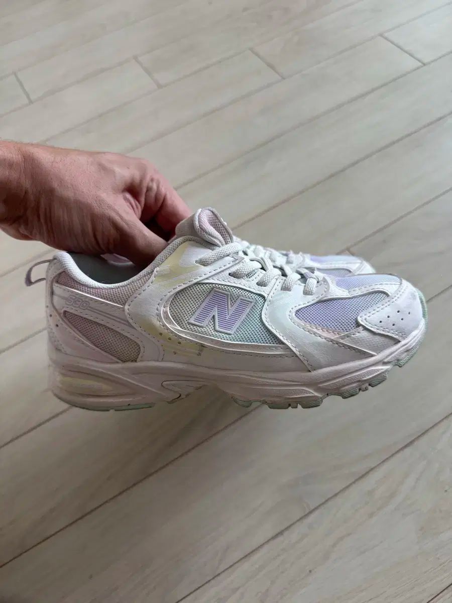 これらはニューバランス530のキッズサイズ200の靴です。これらの靴は子供が履いているので、履き感はありますが、きれいです。