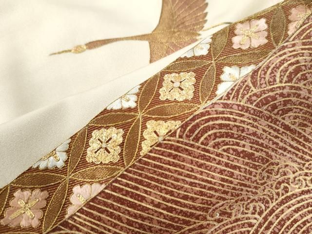 平和屋着物 豪華色留袖 駒刺繍 飛鶴立波七宝花菱文 金彩 三越扱い 正絹 yc