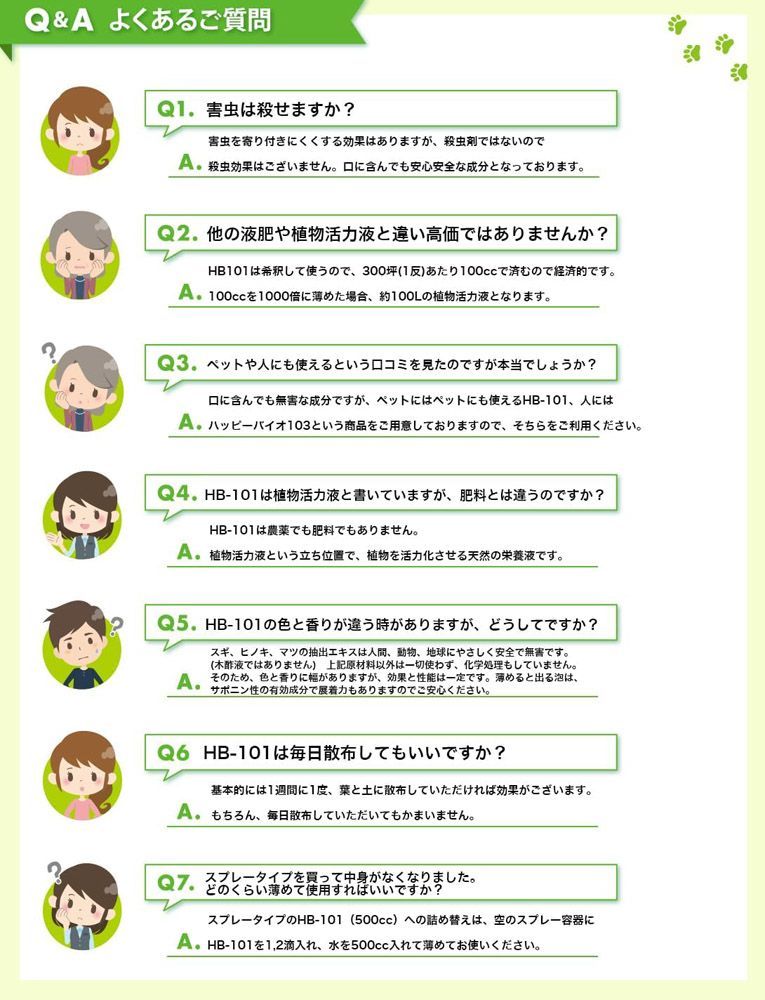 HB-101の原液を水で1,000倍~10万倍に薄めて使用