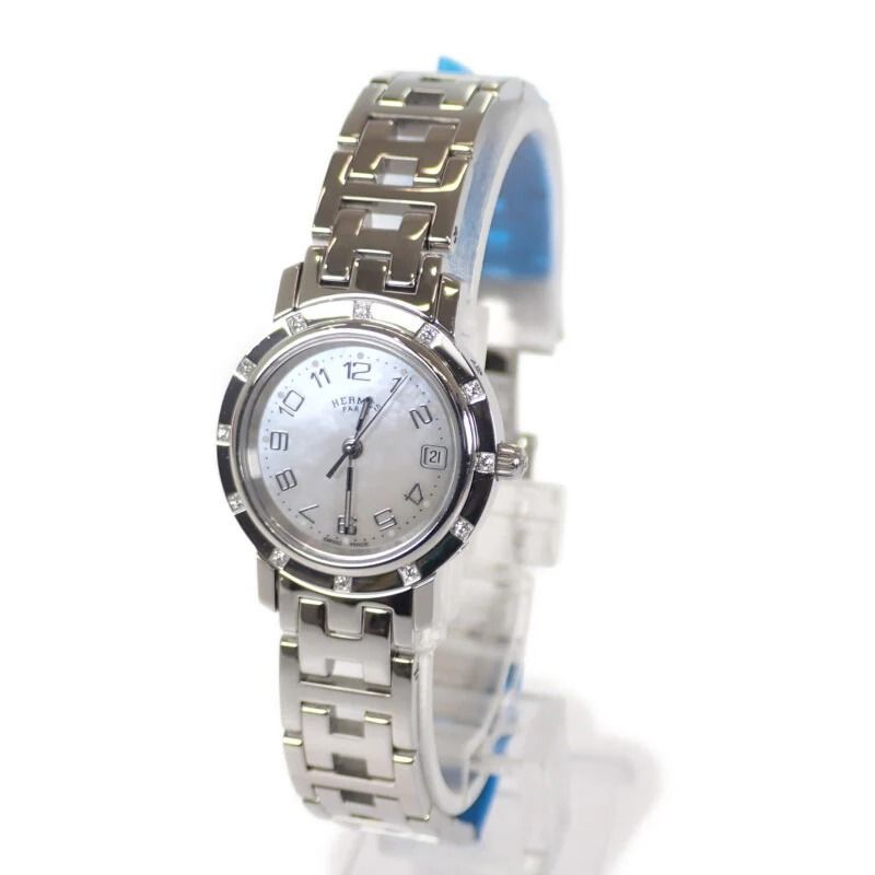 【HERMES】HERMES クリッパー ナクレ CL4.230 腕時計 ステンレススチール クオーツ ホワイトシェル文字盤 レディース【時計】