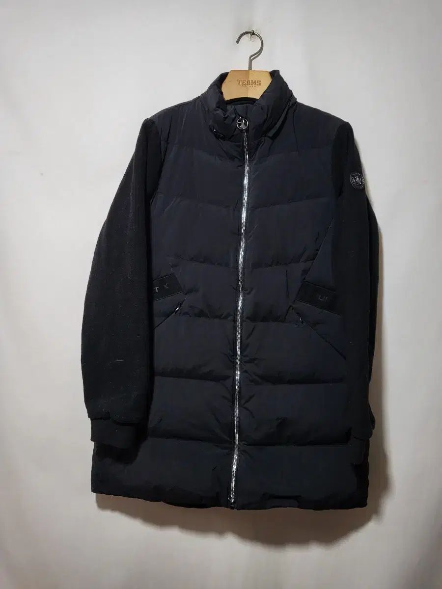 これはJDXゴルフウェアグースパッド入りジャケットです。ブラックカラーなのでコーディネートしやすいです。袖はパッド以外の素材で作られています。