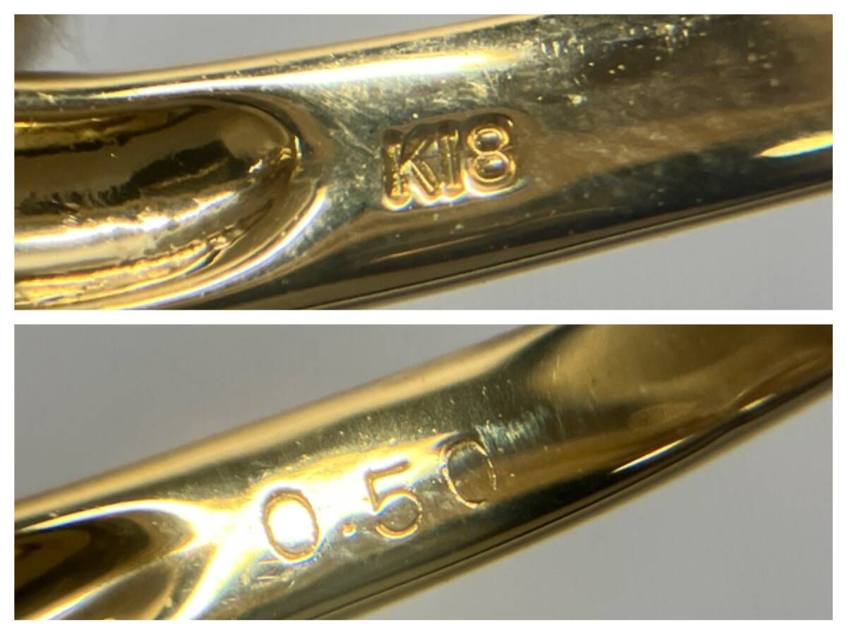 K 18 天然ダイヤモンド 0.50の刻印あり リング 20号 4.8 g ソーティング付 フラワーモチーフ クラスターセッティング ひねり腕