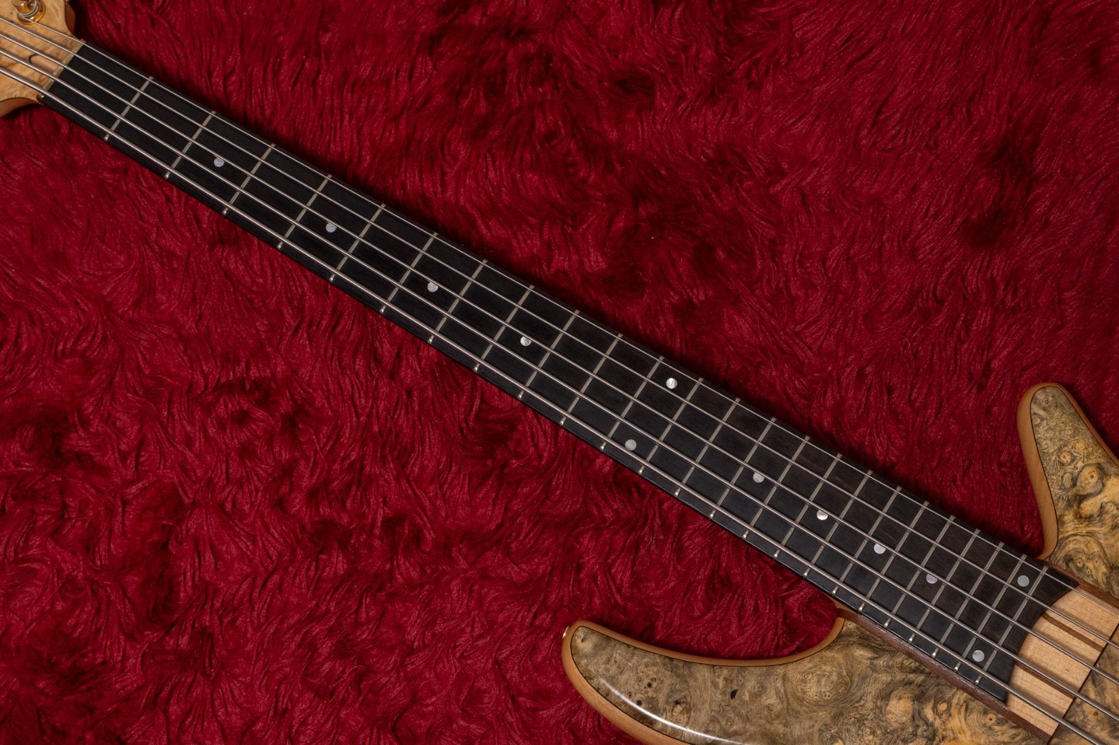 ボディトップはBuckeye Burl、コアにAlder、バックはFlame Mapleと豪華な構成。