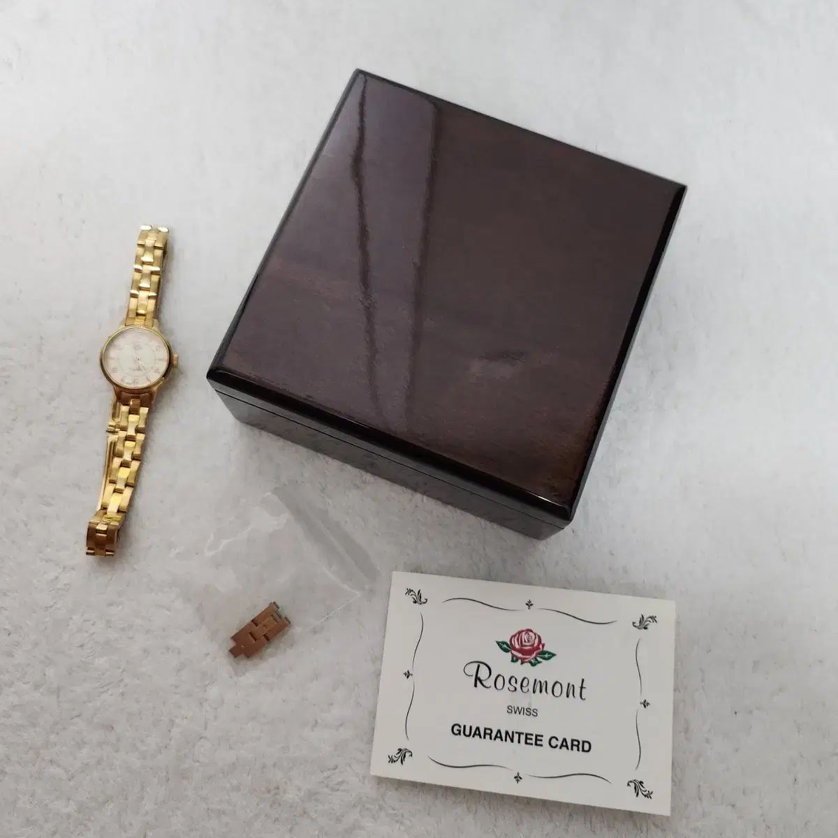 Rosemont金ウォッチは付属品完備で販売されています。