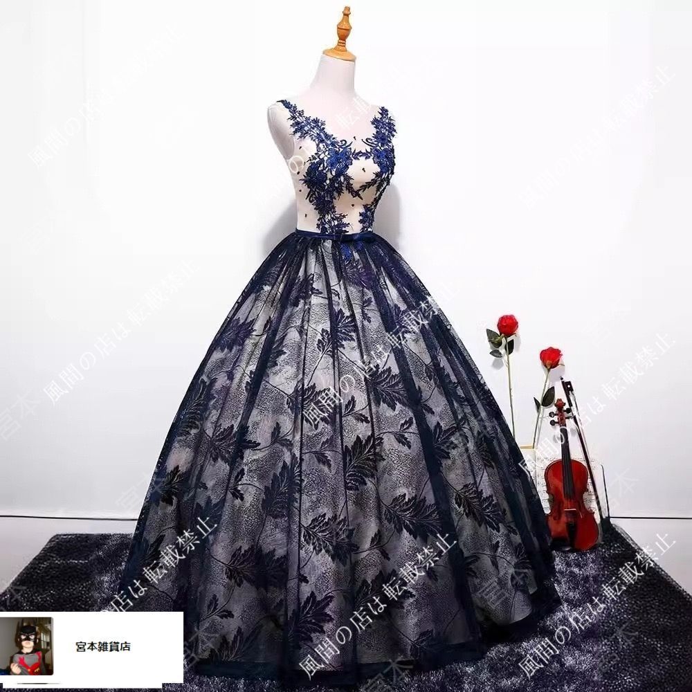 ウエディングドレス ピアノ発表会 カラードレス 花嫁 結婚式 演奏会 ネイビー ロングドレス 二次会 パーティードレス コンサート フォーマル