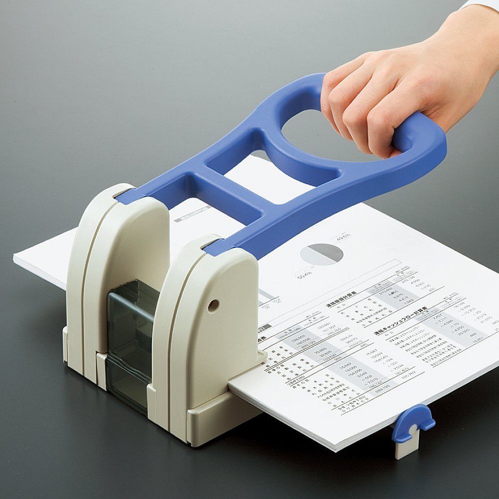 ●軽い力で穴あけできるユニバーサルデザインの強力パンチ。PPC用紙70枚が一気に穴あけできます。