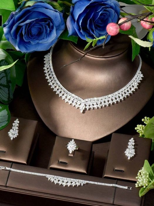 ジュエリー レディース セット キュービックジルコニア リーフデコレーション ジュエリーセット エレガントな婚約用ウェア