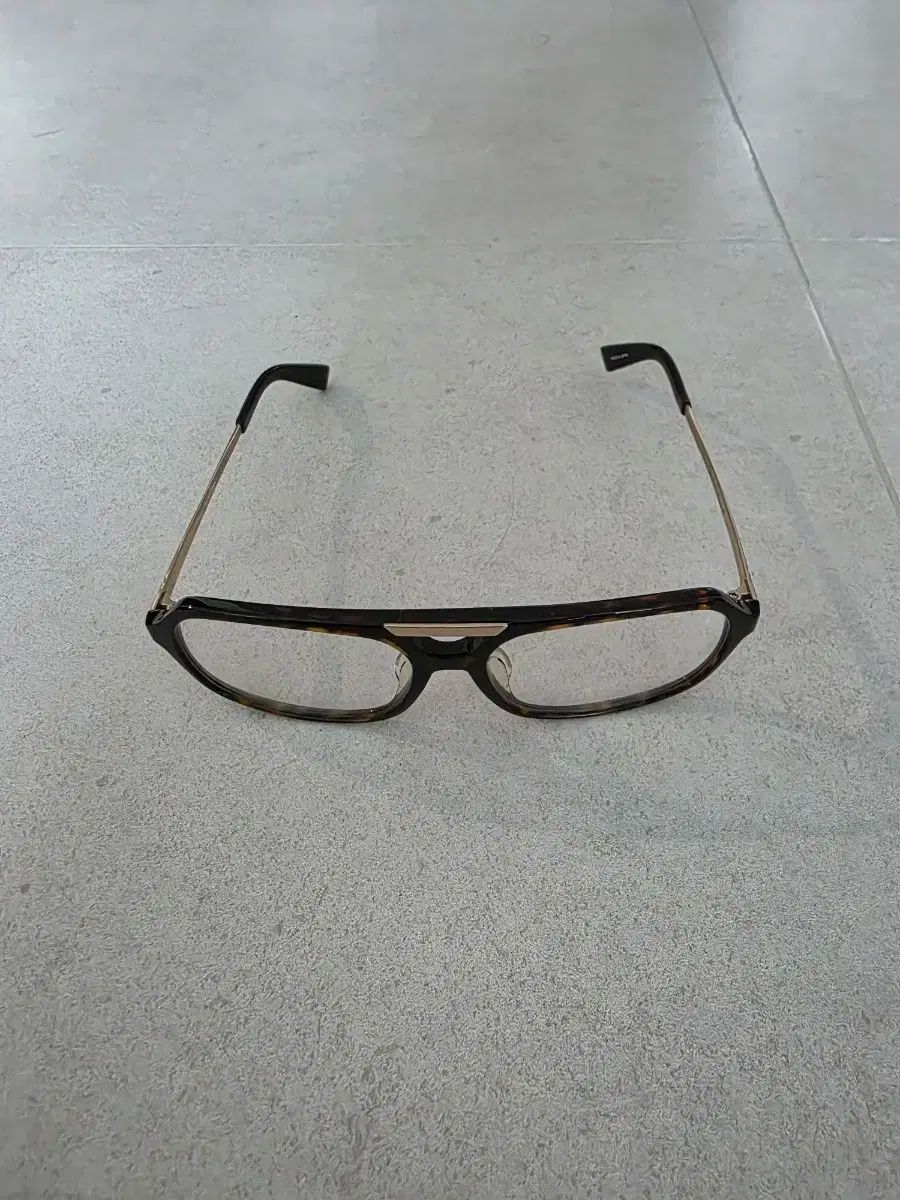 ブラウンのホーンフレームとゴールドメタルの脚がデザインと調和しています。