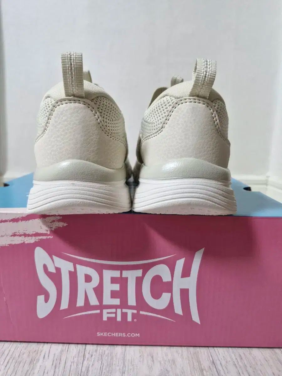 アイボリー カラーの SKECHERS 靴 230 サイズです。甲を覆う デザインなので、靴下を履かずに履いてもきれいです。クッションが良く、履き心地もとても良いです。