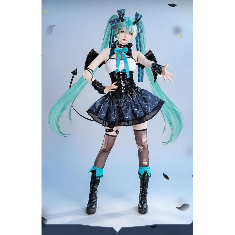 初獣猫 初音ミク アライグマコラボ 小悪魔 コスプレ小物 角ヘアアクセ 翼 3 Dウィッグ meilu 51204