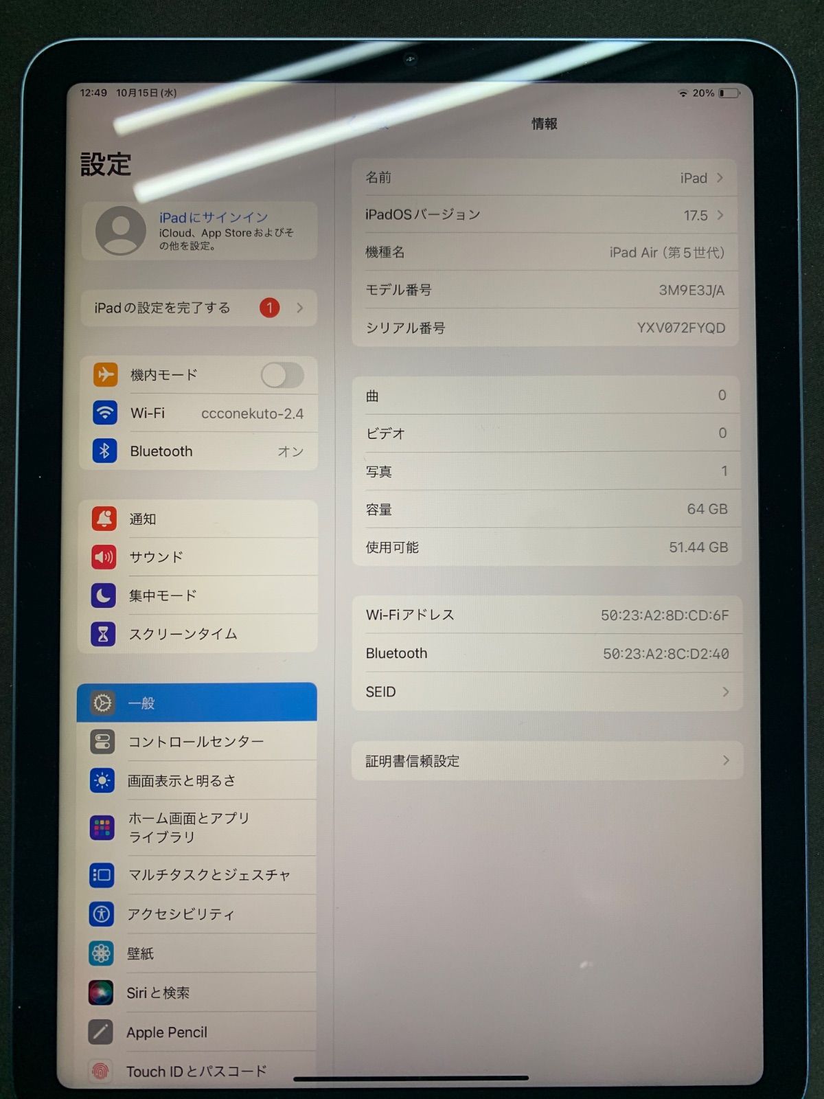 「」機種 : iPad Air 5 Wi-Fiモデル