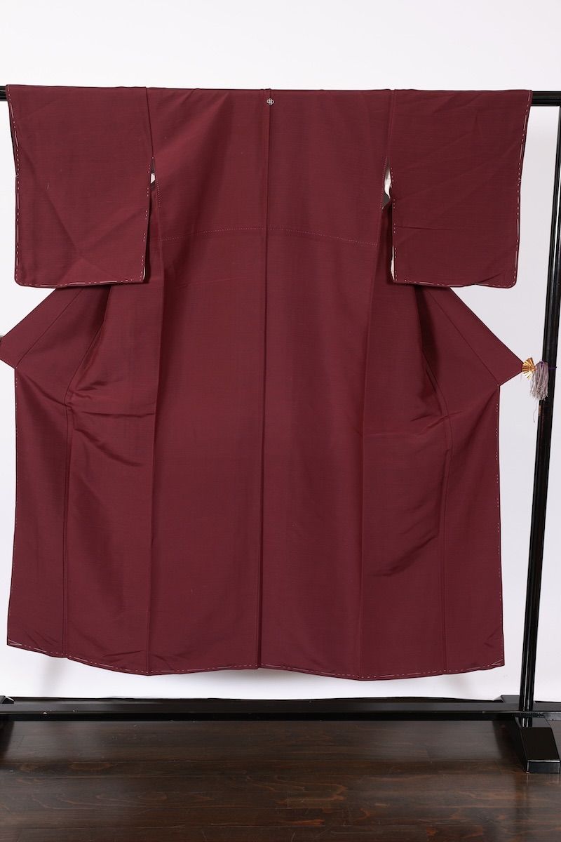 濱紬 小豆 縫い紋 カン木瓜 B 919