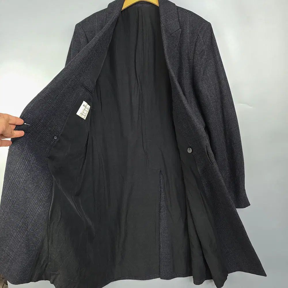 英国 MALLALIEUS 生地で製作された Classic Single Long コートで、高級感ある質感とスリムな シルエットが特徴です。