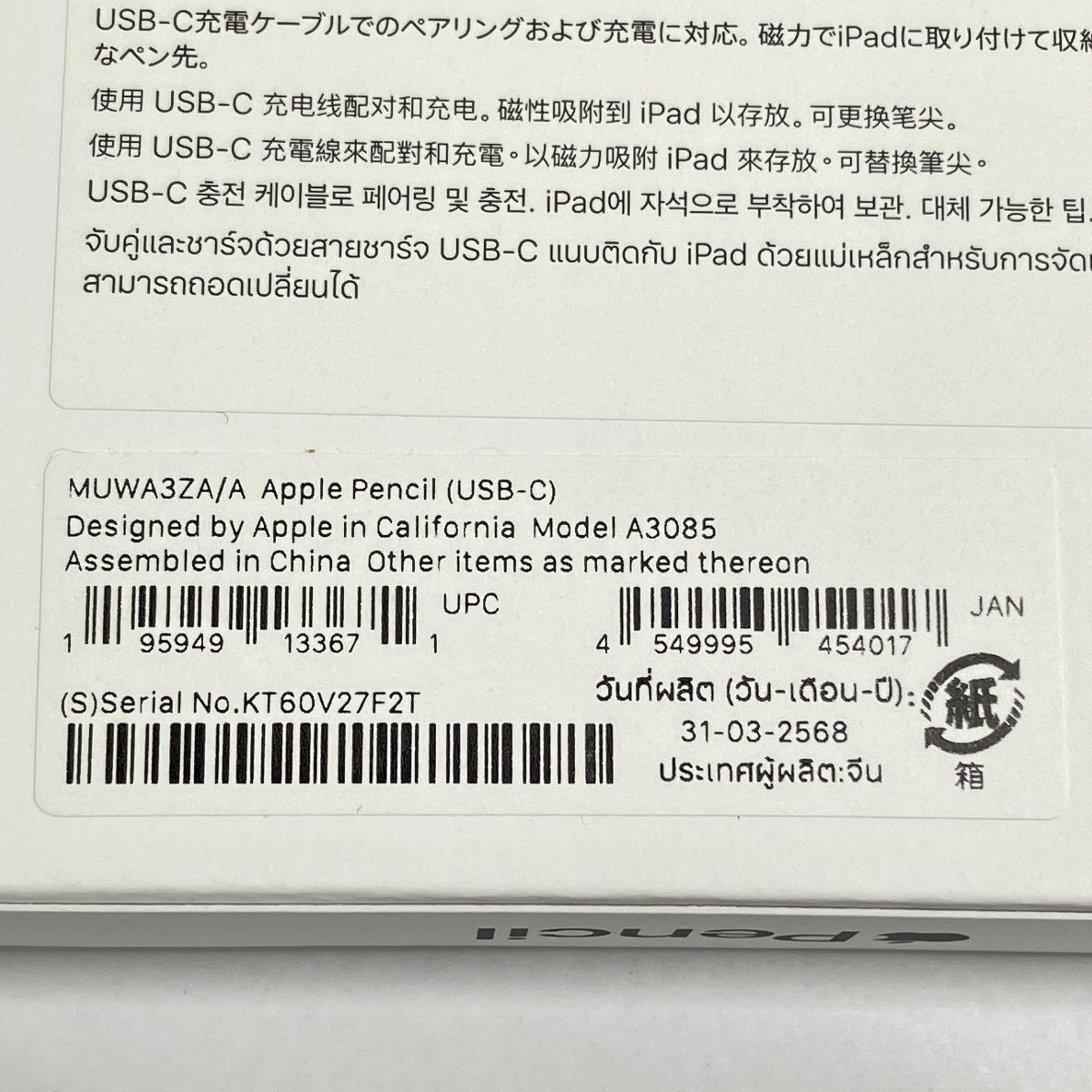 こちらは「Apple Pencil USB-C MUWA3ZA/A アップルペンシル 新品 」でございます。