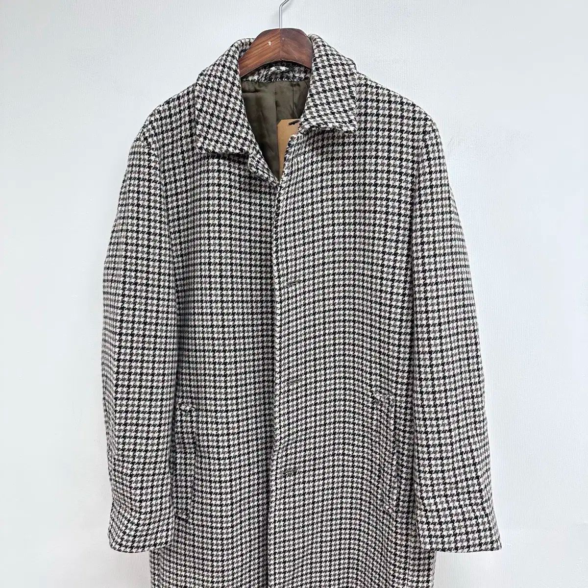 高級感のあるハウンドトゥース チェック パターンが際立ちます。クラシックなデザインで長く着られそうです。