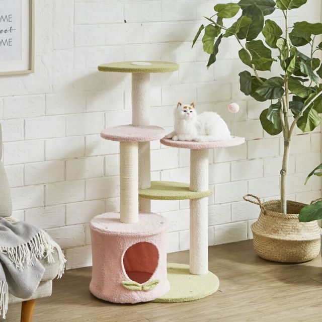説明ネコちゃんとの暮らしを快適に。ピンク色のキュートなキャットタワー。