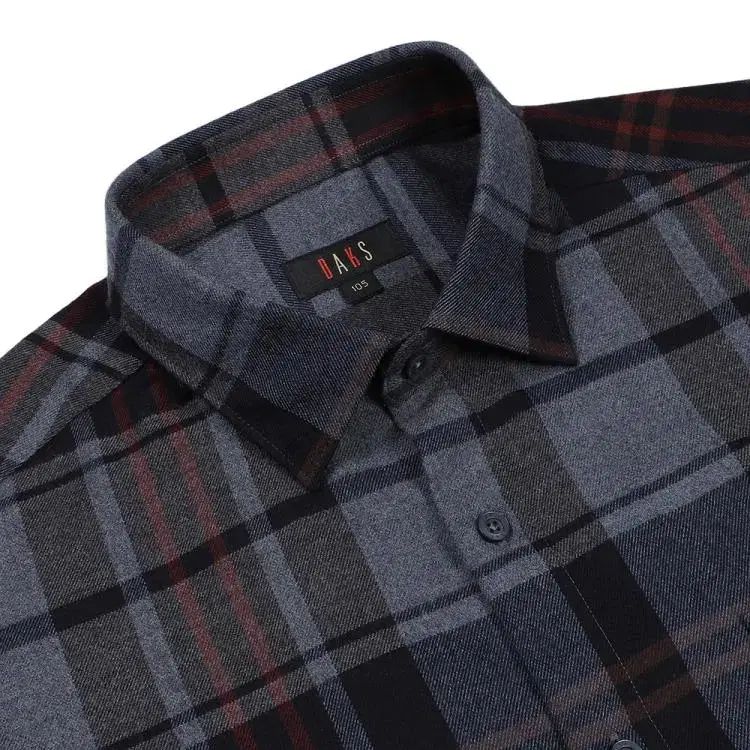DAKS ネイビー 起毛 CHECK シャツ 95 100 105 110