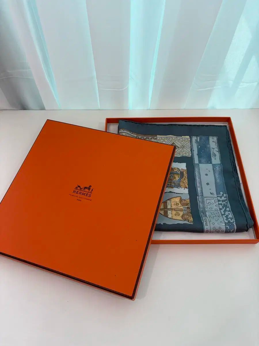 このスカーフを箱に入れて保管しました。全体的に落ち着いた色なので、どんな服装にも合います