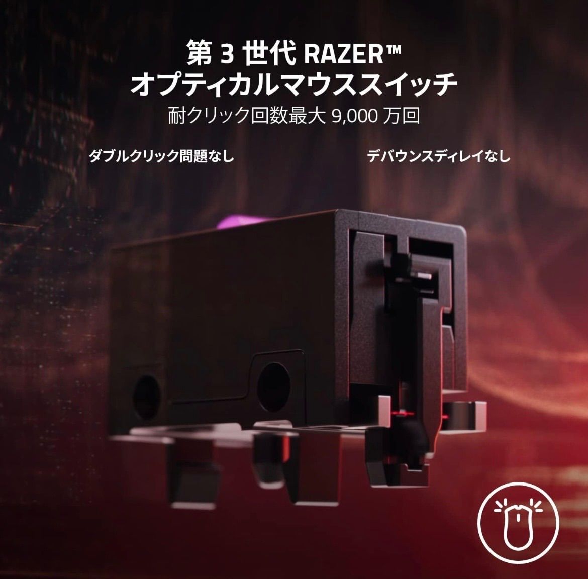 【第3世代Razerオプティカルマウススイッチ】デバウンス遅延のない0.2msの高速動作、チャタリングを起こさない9,000万回のクリック寿命など、eスポーツのため信頼性とスピードを持っています。