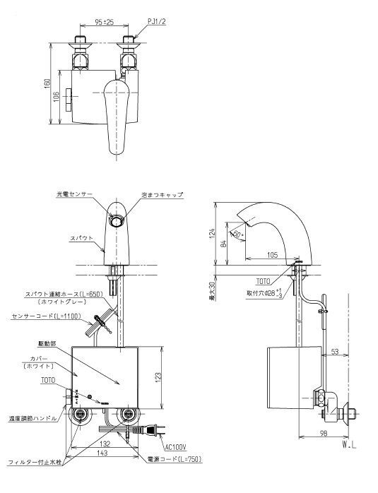 TOTO 台付自動水栓 TENA 50 A