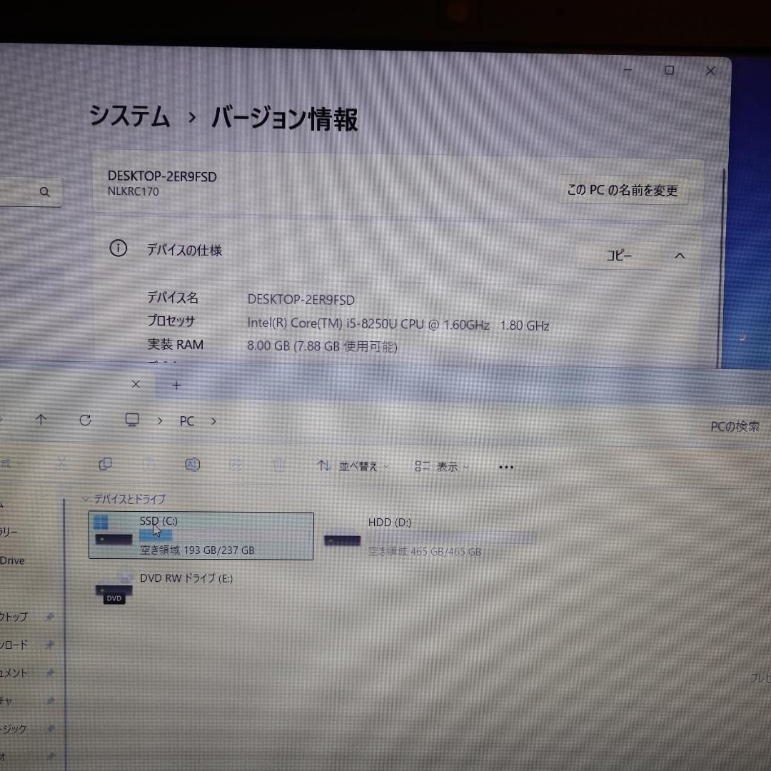 Win 11 対応8世代Corei 5 メ8 SSD HDD FHD 無線 カメラ