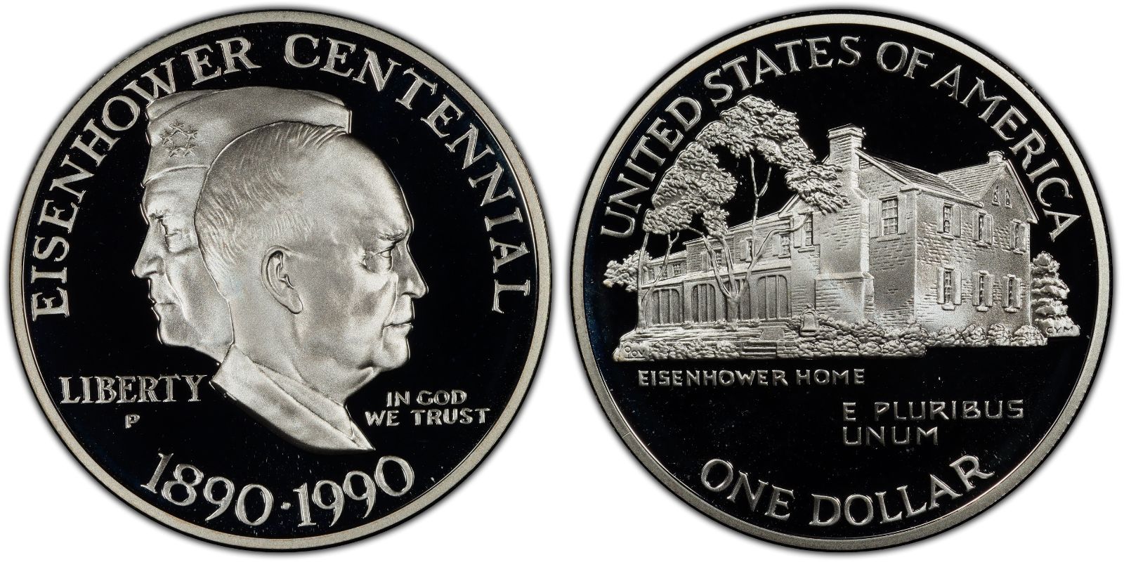 こちらは、アメリカ合衆国で発行された「1990年 アイゼンハワー生誕100周年記念 1ドル銀貨(PR69DCAM)」です。