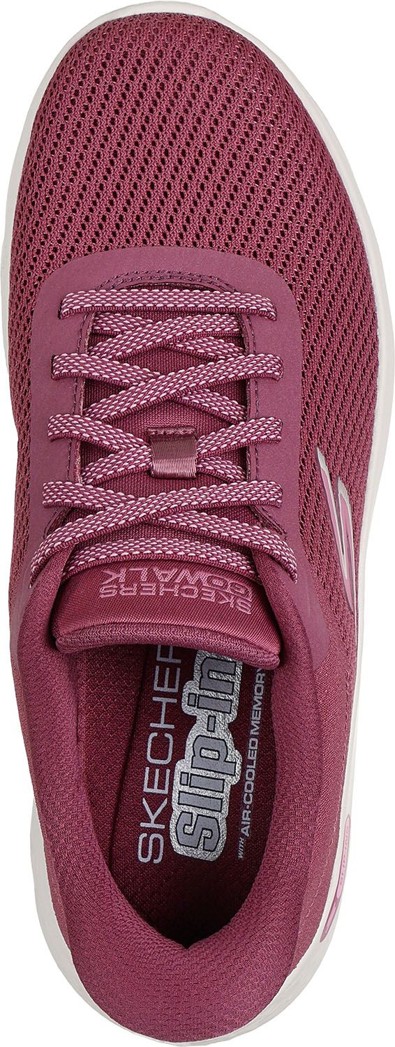 SKECHERS HANDS FREE SLIP-INS( スケッチャーズ ハンズフリー スリップインズ ) が、すぐに足にフィット : 独自の HEEL PILLOW( ヒールピロー ) で足をしっかり固定、さまざまな路面で安定性を発揮するフレキシブルなトラクション性 : 軽量なクッション性でさらに快適な履き心地を強化。