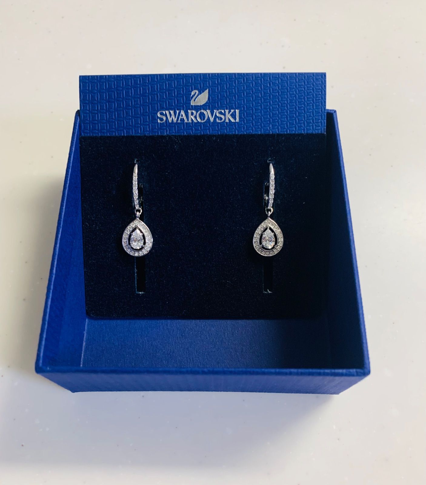 スワロフスキー『Attract Light Pear ピアス』です。ペアシェイプのセンターピースの周りに施されたクリア・クリスタルのパヴェが輝くピアス。ベストセラーAttractシリーズに仲間入りしました。艶やかな光沢のロジウム・コーティングがメタルに施されています。