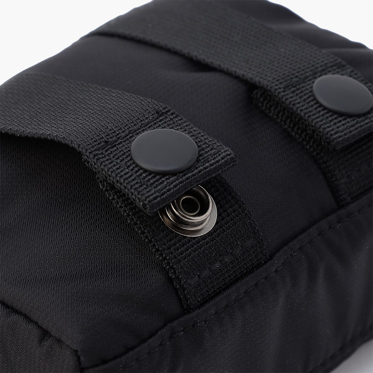 ・カバン背面にはベルトに通せるスナップを配し、ベルトに装着することでウエストポーチに。