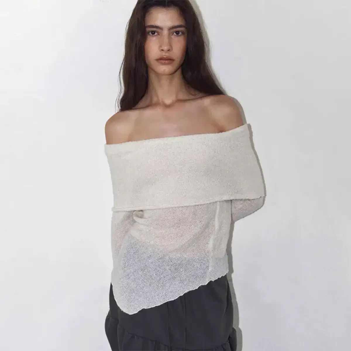ポリシュエム wool off ー shoulder sweater ivory