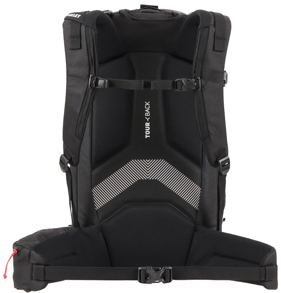 バックカントリースキーに必要な道具を効率よく収納できるリュックサック日帰りバックカントリースキーに十分な容量と、機能的な収納を備えたスキーツーリングリュックサックです。スキーホルダーをサイドに配置し、フロントにはポールやアイスアックスを留められるアタッチメントを搭載。さらにメイン収納と別のセーフティギアコンパートメントに、スコップやプローブといった素早い取り出しが必要なギアを整理して収納することができます。撥水加工を施した耐久性のあるリサイクル素材を使用し、環境への負荷も軽減しています。