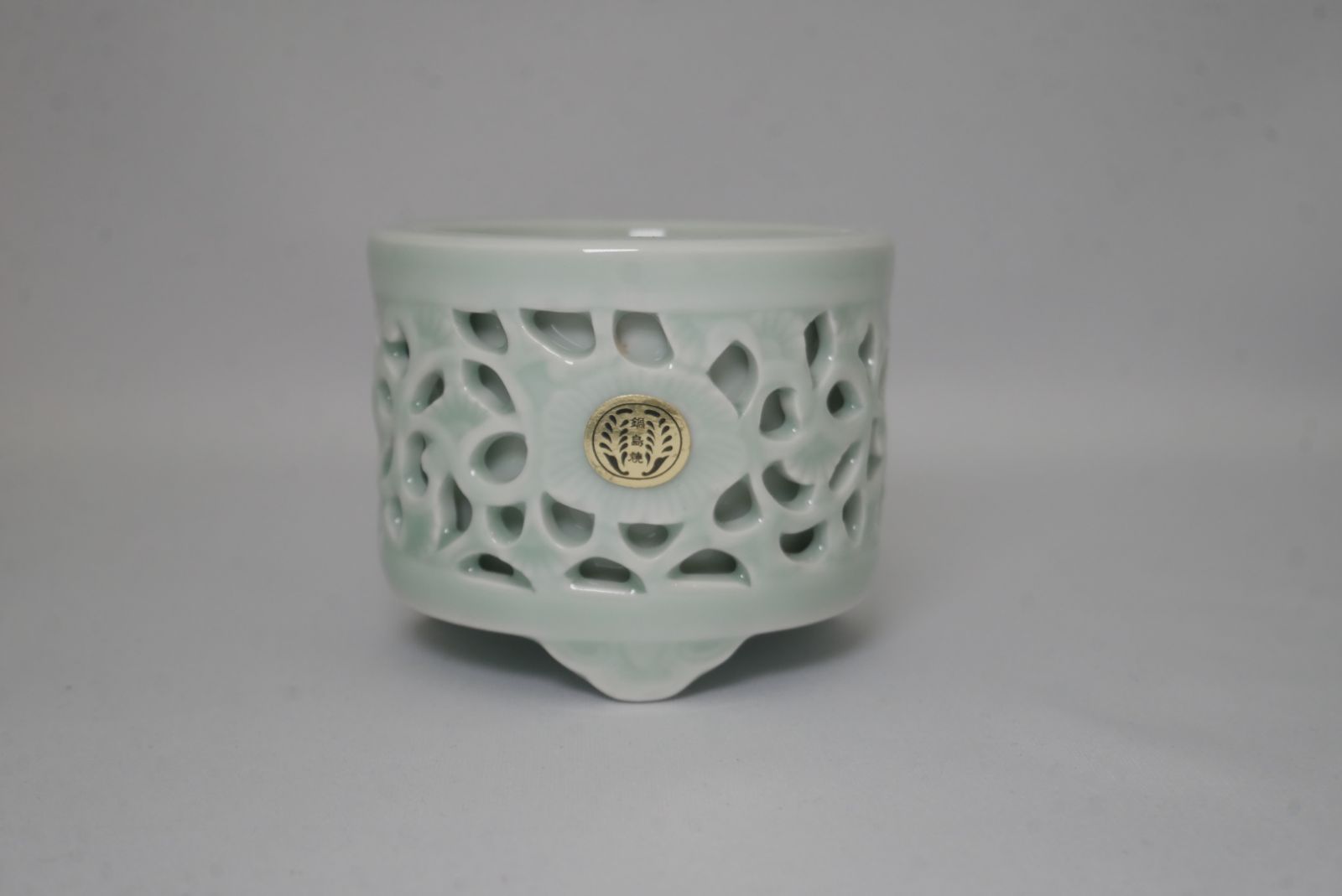 仏具 鍋島 青磁透し香炉 2 5寸 み