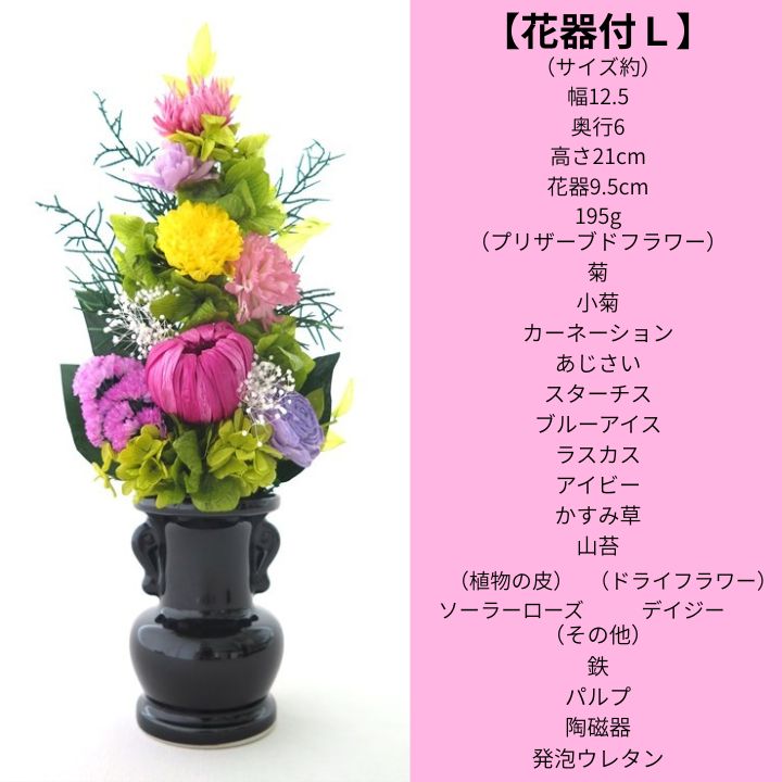 仏花 プリザーブドフラワー 仏壇 お供え お彼岸 お悔み お盆 新盆 四十九日 ギフト 飾れる 花器付L