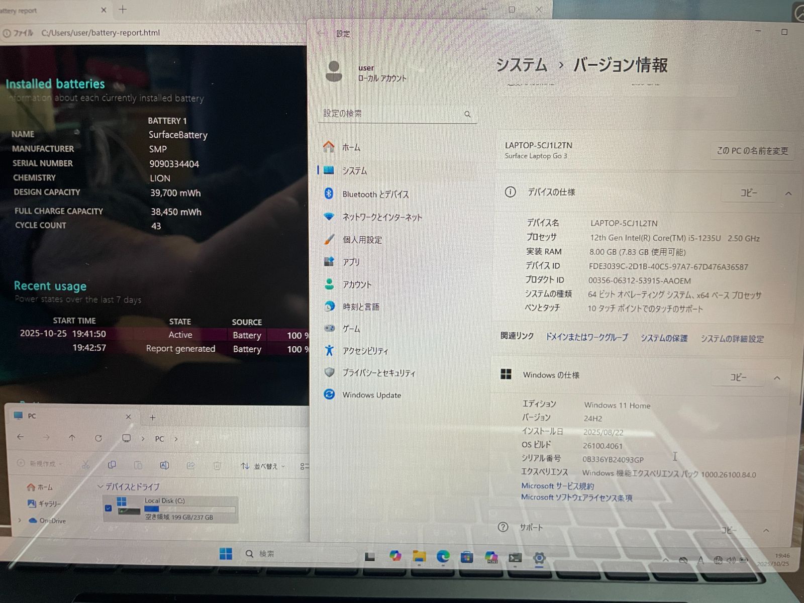 充電回数43回でバッテリー性能98%で非常に良い状態です。