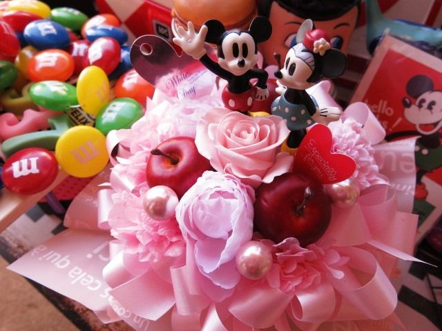 卒業祝い ギフト ディズニー 花束風ギフト ラテ プリザーブドフラワー入りギフト ノーマル ミッキー ミニー ケース付き プレゼント 記念日の贈り物に のフラワーギフト