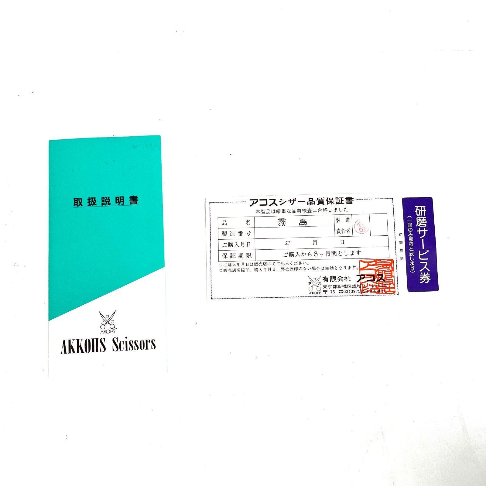 品 AKKOHS アコス Scissors ハサミ 霧島 HO
