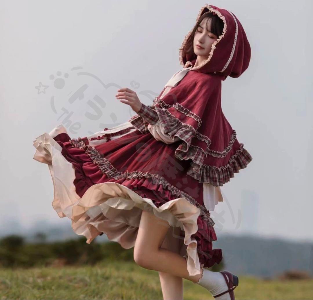 新年 用コスプレ衣装 ロリータひざ丈チェック柄ワンピース&ケープセット普段着女子会