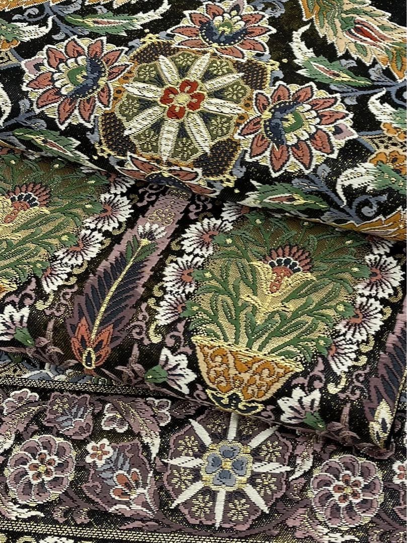 細密織 袋帯 洋花 モダン 金糸 正絹 三通