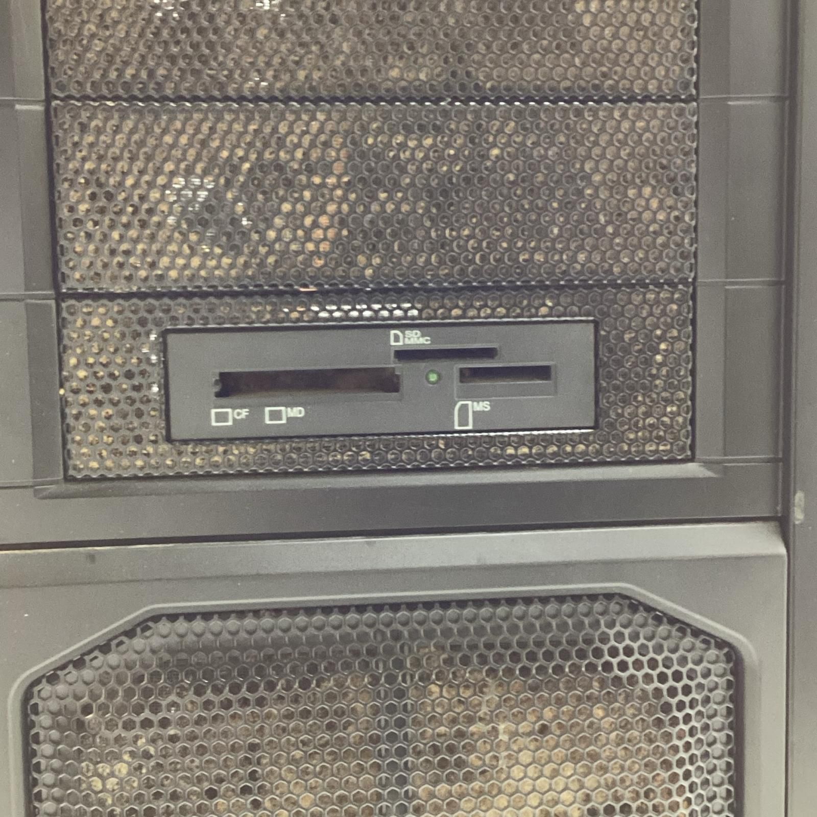 正面、中心から少し上のパーツが取れかけています、ファン部分にホコリが溜まっています。