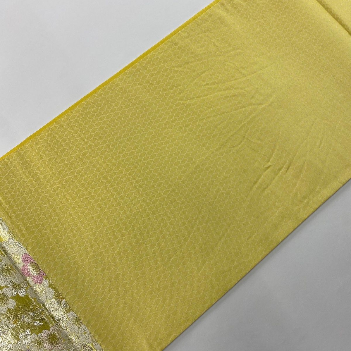 袋帯 秀品 桜 桜の花びら 銀糸 箔 黄色 六通 正絹