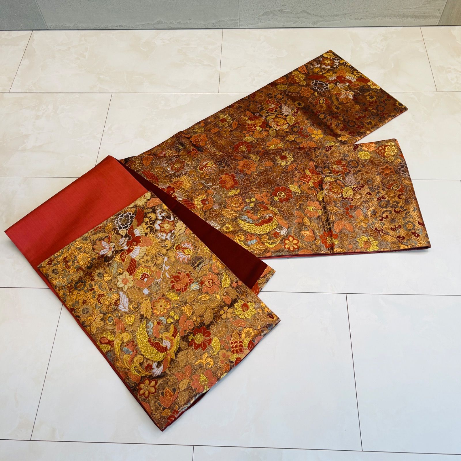 【色】 赤系 花 金刺繍