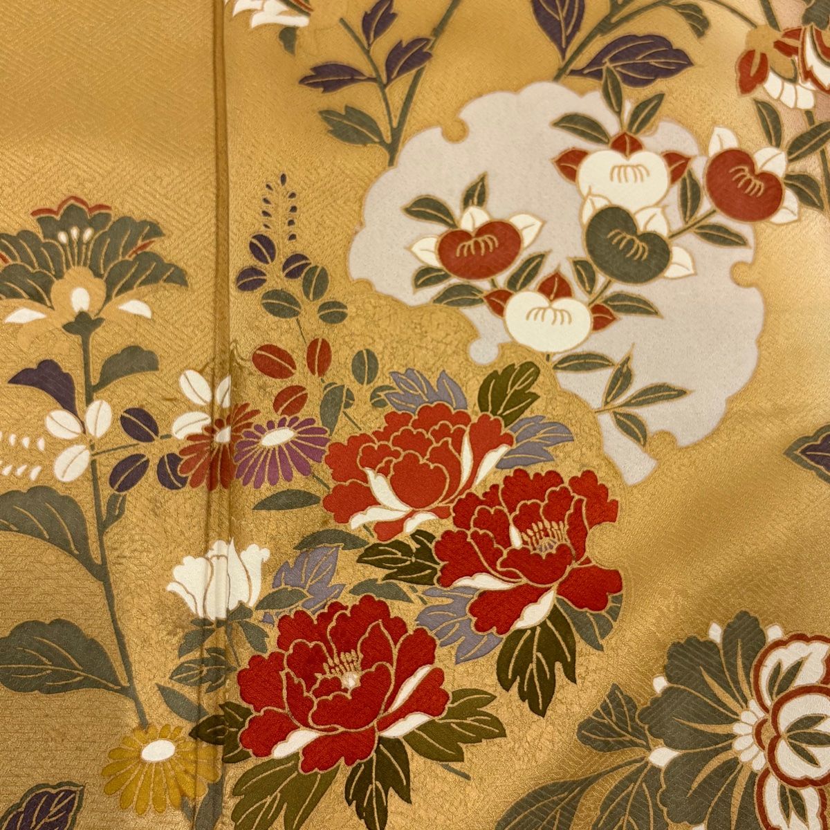 右袖前後と右胸にシワ、表地所々に金彩の剥がれがございます。