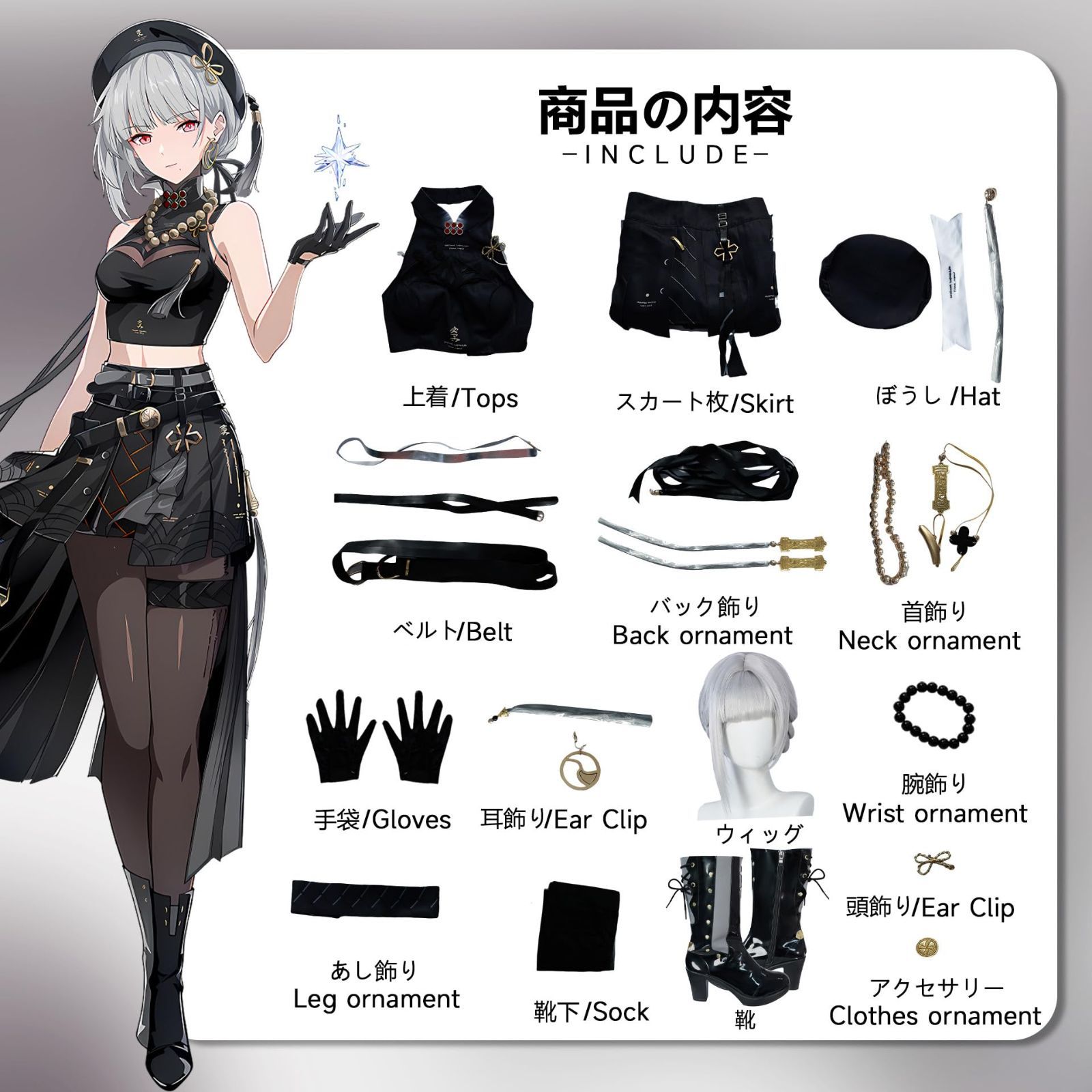 当店のコスプレ衣装につきましては、一部の商品リンクにはウィッグや靴が含まれている場合がありますが、一部の商品リンクの価格にはウィッグ、靴、または武器が含まれていない場合もございます。