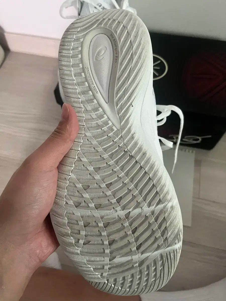 これらはローバージ3 Asics (アシックス) バスケットボールシューズで、サイズ275です。オールホワイトなので、コートを着ても目立ちます。