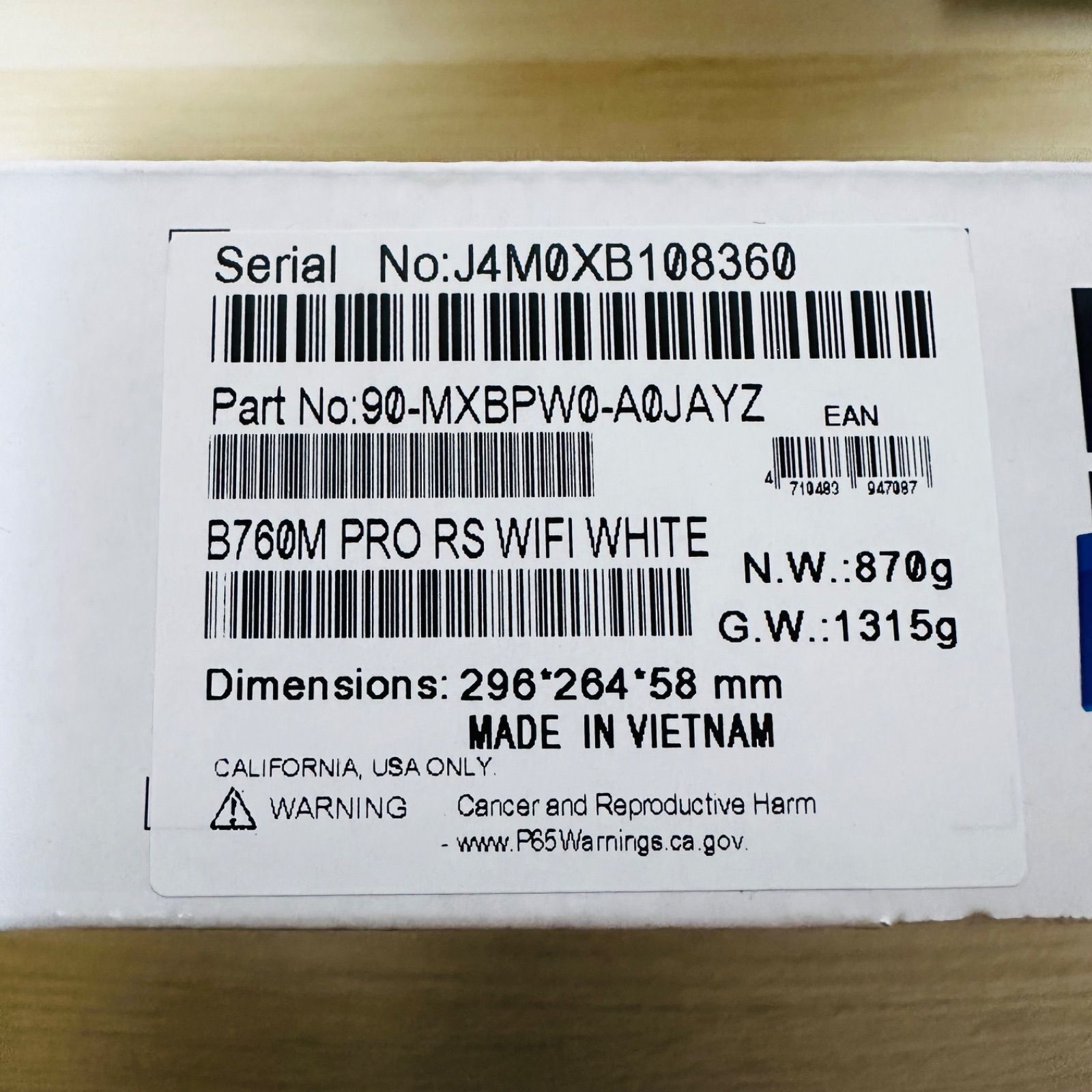 - モデル名: B760M PRO RS WiFi WHITE