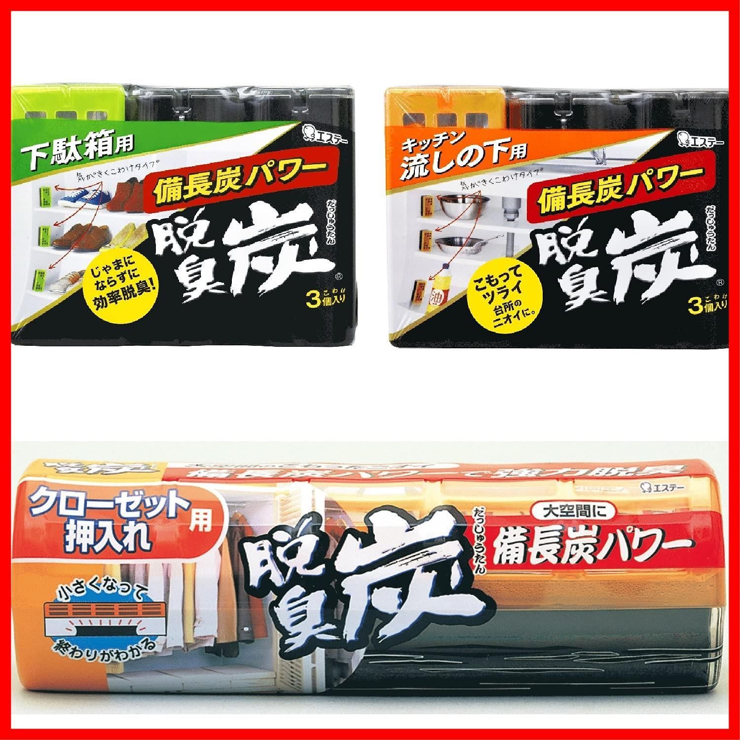 脱臭炭 [収納ニオイ対策 まるごとセット] 収納空間 脱臭剤 ( 下駄箱用 + キッチン・流しの下用 + クローゼット用 ) 備長炭パワー 置き型 消臭 消臭剤