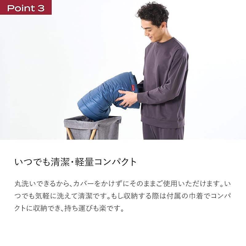 家庭洗濯機で丸洗いできるから、カバーをかけずにそのままご使用いただけます。いつでも気軽に洗えて清潔です。