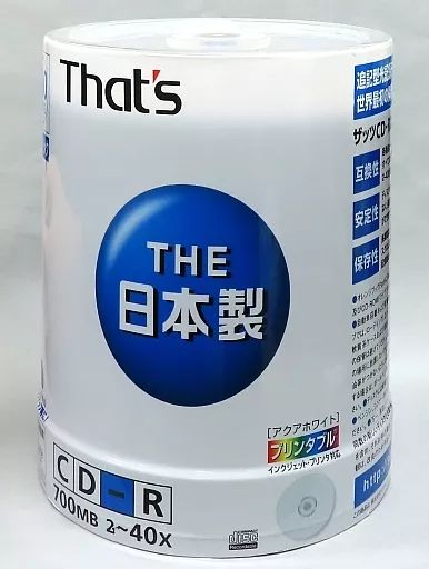 商品名:【新品】CD-R 太陽誘電 データ用CD-R That’s 700MB 40倍速 100枚パック [CDR80AWPY100BR]
