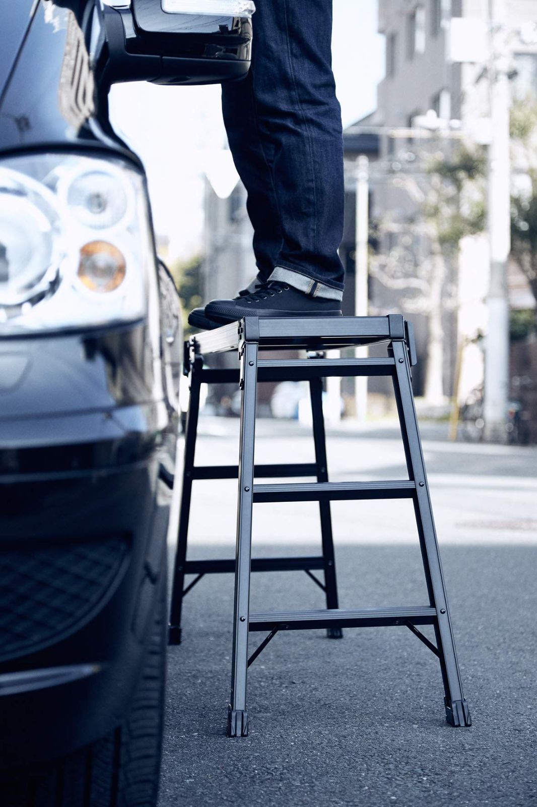 精悍なブラックタイプ。 折りたたみ構造で車のトランクにも収納OK!