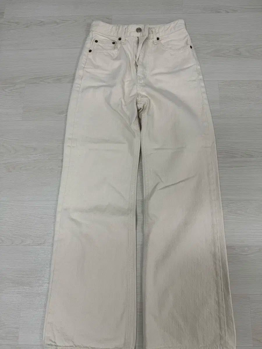 アイボリーカラーのフォージオンワイドフレアデニムです。落ち着いた色味はどんな装いにもピッタリです。ワイドフィットで着心地も快適です。ご不明な点がなければ、すぐに安心してお支払いいただけます!